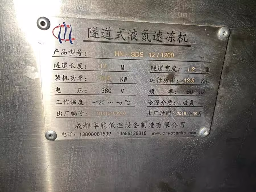 (品牌:成都华能隧道式液氮速冻机)(现设备处于停用状态)